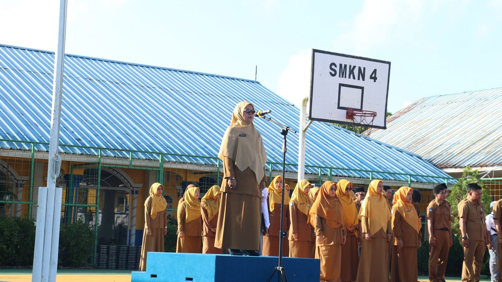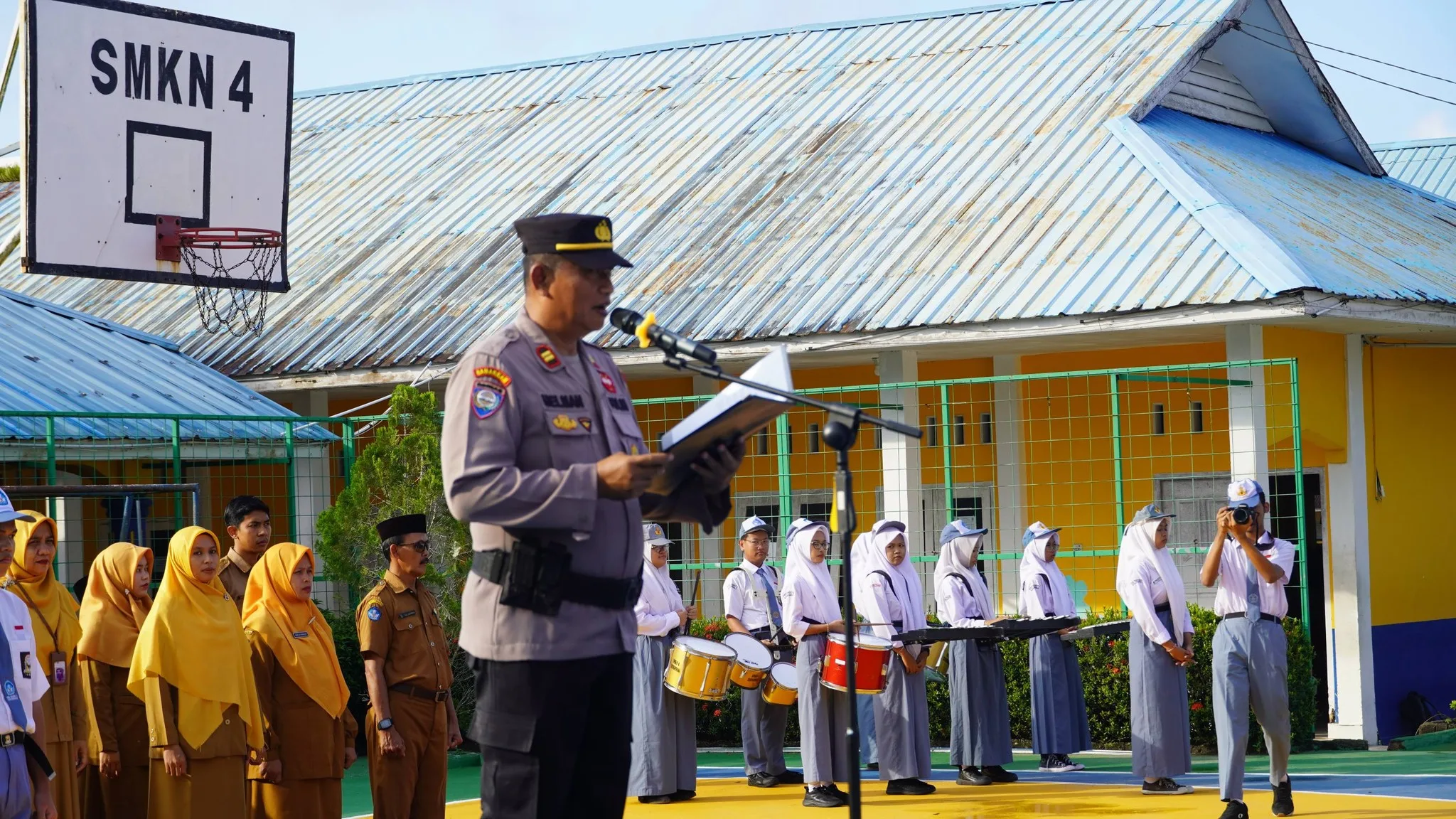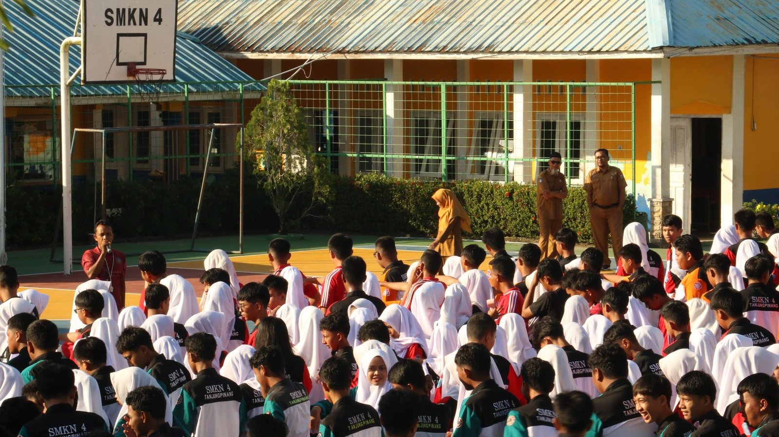 Skanpattpi – Upacara bendera Senin pagi di SMKN 4 Tanjungpinang berlangsung dengan khidmat, dihadiri oleh tamu dari Sat Binmas Polresta Tanjungpinang yang
