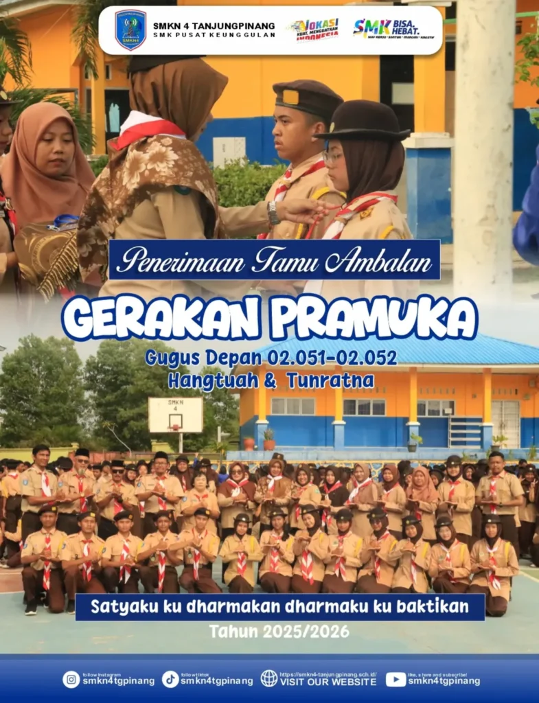 SMKN 4 Tanjungpinang melaksanakan Upacara Penerimaan Tamu Ambalan (PTA) sebagai wujud pembinaan generasi muda yang disiplin, berkarakter, serta siap berkontribusi positif bagi bangsa dan negara. Upacara Penerimaan Tamu Ambalan dipimpin oleh Pembina Upacara yaitu Ibu Yayuk Sri Mulyani Rahayu, S.Pd.,M.M