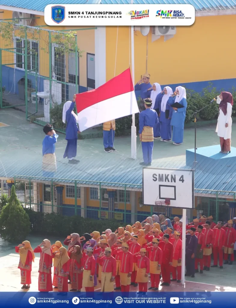 SMKN 4 Tanjungpinang melaksanakan upacara peringatan HUT Provinsi Kepulauan Riau ke-23 sebagai bentuk rasa syukur dan penghargaan atas perjalanan panjang Kepri dalam membangun daerah serta memperkuat jati diri sebagai provinsi kepulauan yang maju dan berbudaya. Upacara ini dipimpin oleh Pembina Upacara yaitu Dessy Anggraini, S.Pd. sedangkan yang memimpin Upacara adalah Nouval Syahdi Kelas XI Animasi dan yang terakhir sebagai Pengibar Bendera Merah Putih diamanahkan kepada Wahyu Rizky Adipura Kelas XI TKJ1, Arumi Balqissyah Ramadhani kelas XI DKV3, Syahrul Amirullah Kelas XI DKV3.